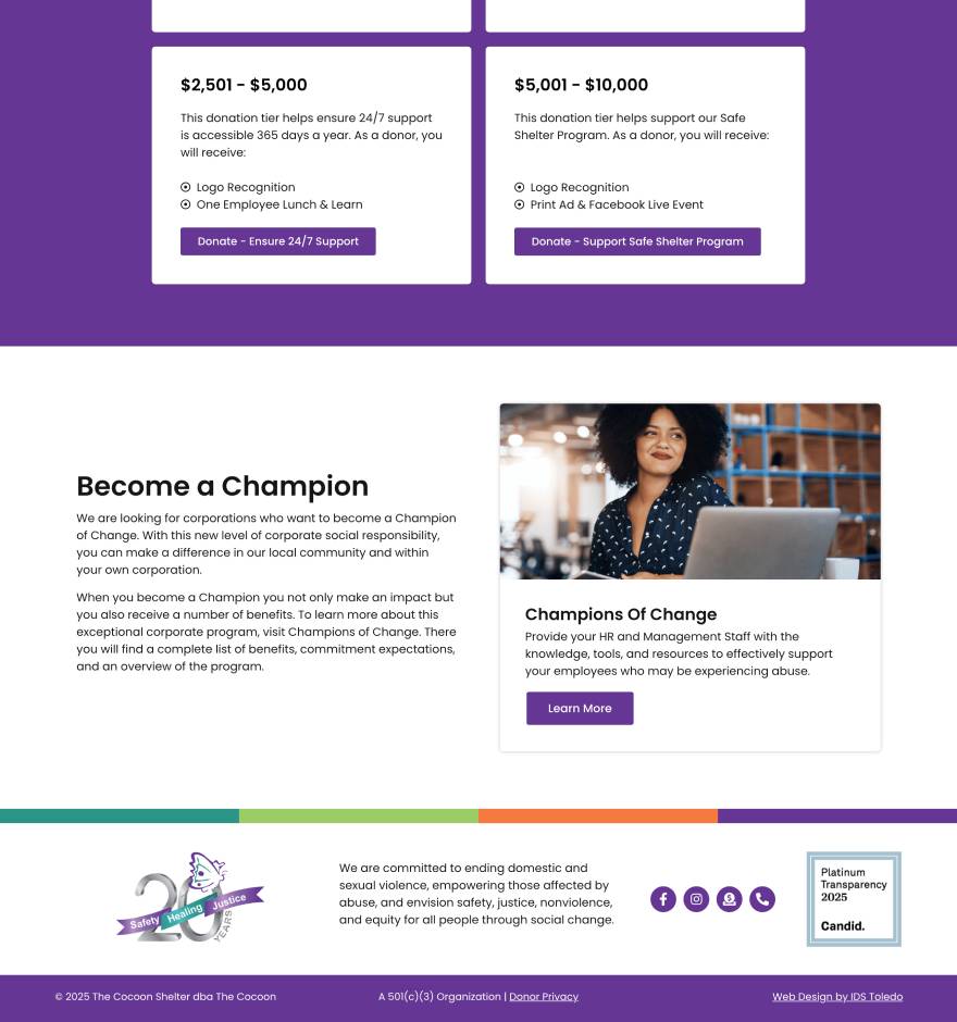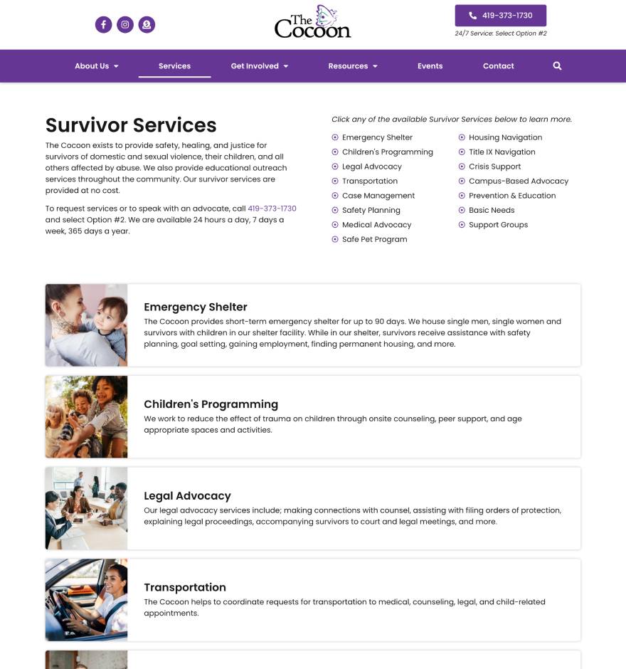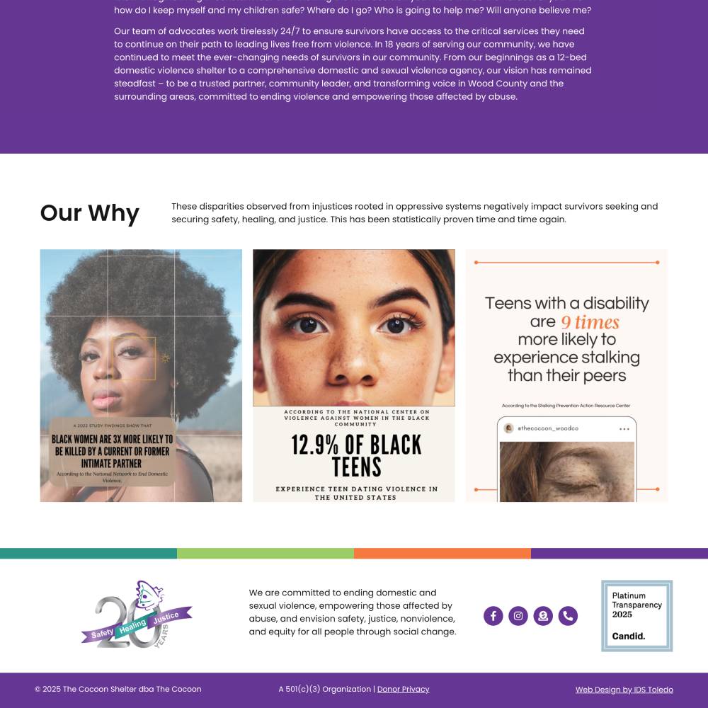 - IDS delivered an effective, service-focused website that helps survivors reach The Cocoon and affirms the organization's safe, supportive environment.
